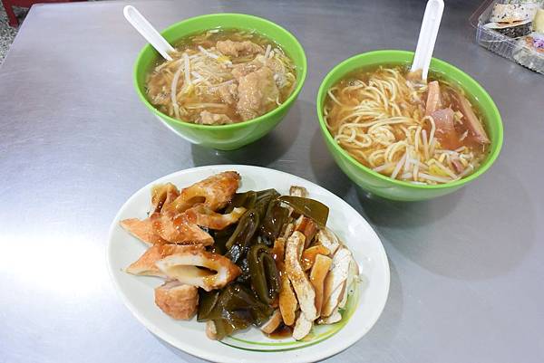 我們點了魷魚羹麵、肉羹米粉和一盤小菜總共170元,用餐後才結帳。