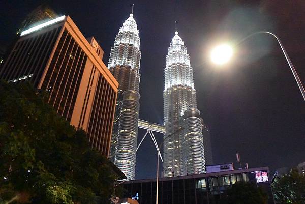 我們住宿的飯店離這雙子星塔不遠,所以晚上我們跑來附近買東西,順便又來欣賞它的銀白高塔燈光,其實也不輸多彩投射的其他大樓。