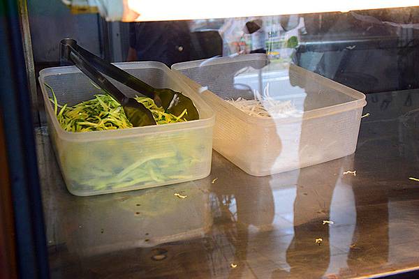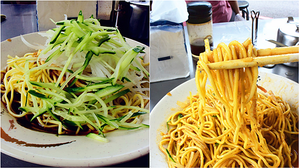 看老闆兩手這裡抓一點,那裡抓一點,很快就送上我們的涼麵來了。