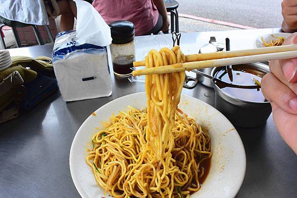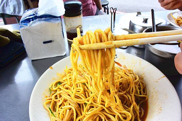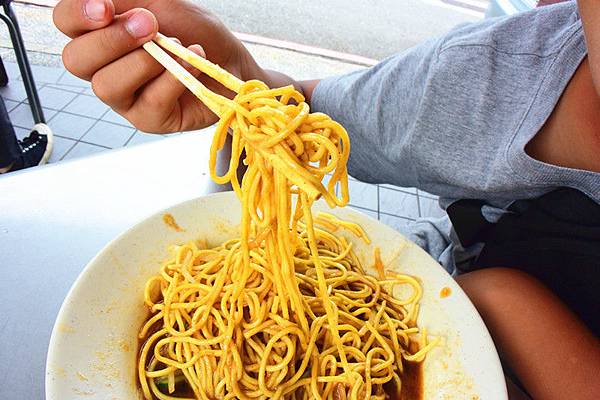 把麵條、配料和醬汁攪拌時,隱約聞到一股酸甜的氣息,迫不及待夾起吸了一口麵條,果然就是店家的醬汁所散發的香氣,真是清爽啊!