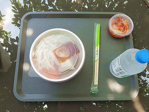 店家開了22年,一直都只賣涼麵,聽到我問,很大方地拿了一瓶瓶裝水給我,讓我都不好意思了。
