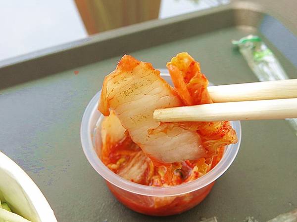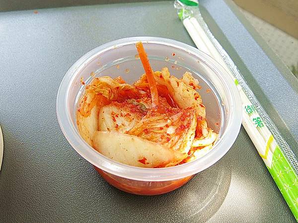 泡菜偏韓式,微酸但不很辣,也不會像台式那樣的甜,輕脆口感單吃或配涼麵都好。
