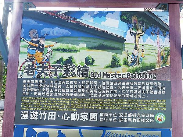 小時候讀的漫畫不多,老夫子是少數陪著我長大的兒童讀物,沒想到來到屏東才發現有老夫子彩繪村,而且是作者王澤親筆繪製;一旁三合院還有Cafe Villa Maya美崙咖啡飄香,加上大幅的南美洲生活畫,相遇在屏東竹田客家小鎮裡,老夫子迷一定要來朝聖啊!