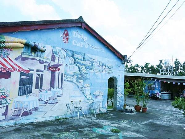 在客家村庄裡,坐在南美洲彩繪牆底下喝咖啡、看老夫子漫畫,感受各種不同文化共同交織的氛圍,很微妙,但也不違和,這就是地球村的概念啊!