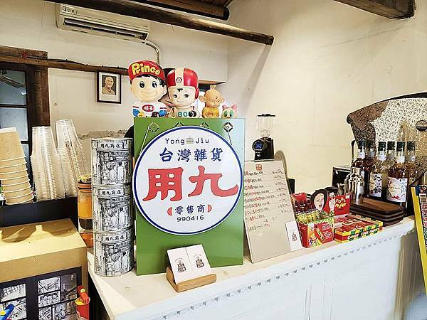 從西河世第進來直走,在一諾藝術展覽館旁有棟紅磚建築,門右側用木板寫著很不清楚的全球柑仔店,但是我被「用久」兩個字吸引注。