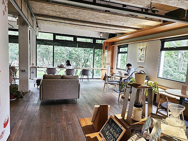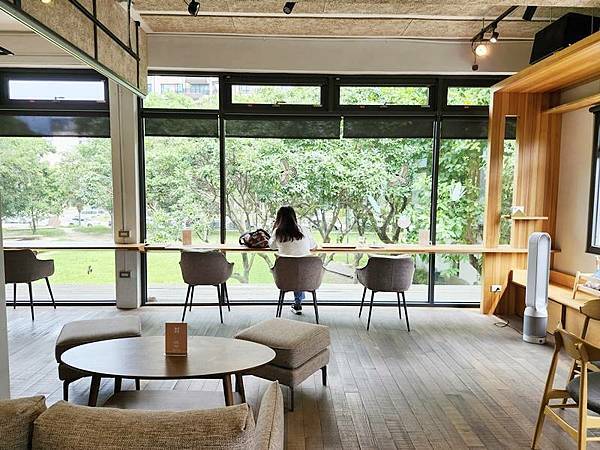二樓則是咖啡店,空間非常寬敞舒適,窗景綠油油的一片真是太棒了;而且還有充電插座,早知道就來這裡寫稿。