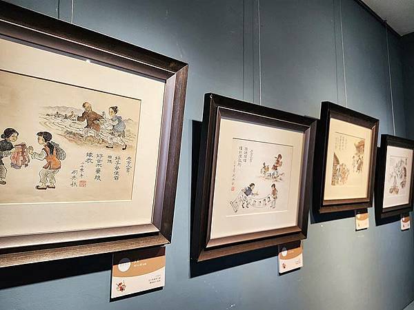 館裡陳列的有老師先前的漫畫書,還有不少其他記錄客家人生活百態的畫作,很幸運遇到工作人員幫我一一介紹,原來從畫裡可以窺見當年不一樣的民俗風情,只可惜因為還有事情,只能期待下次再見,因為展期到10月31日,還有機會。