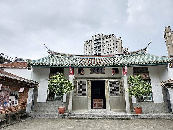 忠孝堂是新瓦屋林家的祭祀公廳,於1973年遷移至此,為一堂廳二橫屋加一門樓的合院建築。建築式樣從1905年泥磚屋改為紅磚屋,1973年再改成鋼筋混泥土。